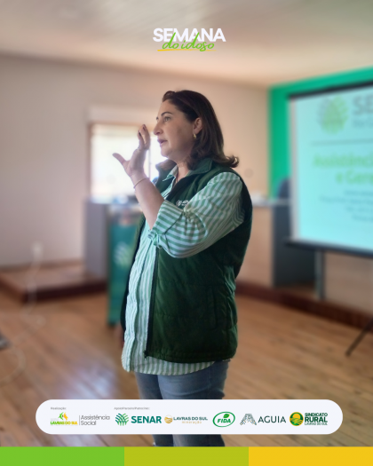 A abertura contou com uma importante palestra ministrada por Flaviane Rahts, do SENAR, que trouxe reflexões e orientações sobre saúde e qualidade de vida na terceira idade, reforçando a importância do cuidado, do bem-estar e da valorização dessa etapa da vida.