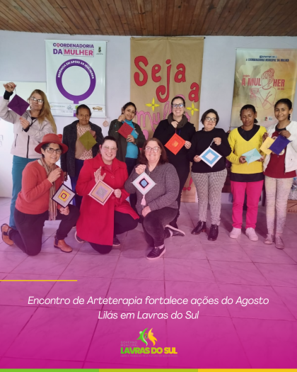 Na tarde desta quinta-feira (21/8), a Coordenadoria da Mulher realizou mais um encontro de Arteterapia, dentro da programação do Agosto Lilás – mês de enfrentamento à violência doméstica e contra a mulher.